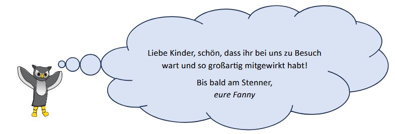 Schulmaskottchen „Fanny“ bedankt sich für die rege Teilnahme und hofft auf ein baldiges Wiedersehen: am Tag der offenen Tür: Samstag, 16. November 2024!